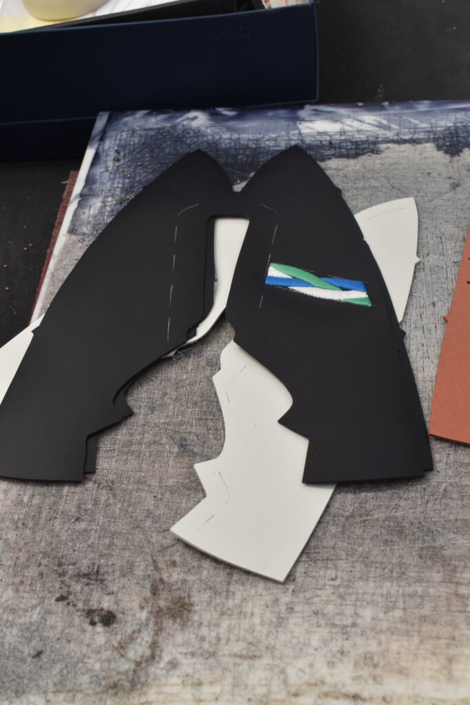 Les cuirs sont soigneusement découpés à l’aide de patrons pour garantir une précision optimale.
