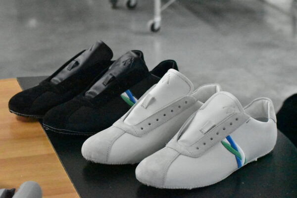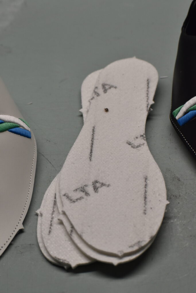 Le chausson est mis en forme pour définir sa silhouette, suivi d’un ponçage pour un rendu impeccable.